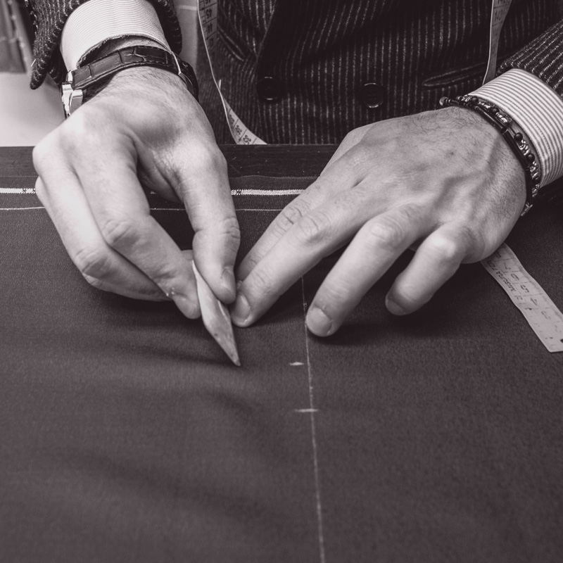 Luxus ist, wenn nichts stört! Ein maßgefertigter Anzug ist ein Statement. Unvergleichbar. Einzigartig. Doch erst wenn Material, Farbe und Schnitt in perfekter Balance stehen, entsteht Ausstrahlung, die wirkt: unangestrengt, selbstverständlich, hochwertig. Deshalb entführen wir Sie mit unserer Stilberatung in die Welt der feinsten Stoffe bester Hersteller (wie Vitale Barberis Canonico oder Holland & Sherry). Farbe und Material werden mit viel Feingefühl auf Ihre Persönlichkeit, den Anlass und die Jahreszeit abgestimmt. Mit jedem Detail unterstreichen wir Ihren Stil. Die Länge des Revers, die Stellung der Knöpfe, die Lage der Taschen, die Farbwahl bei den Monogrammen – alles stimmt. Der Stoff fühlt sich richtig an. Die Farbe lässt Sie lebendig wirken. Der Schnitt sitzt, ohne einzuengen. Und Ihr Maßanzug wird zu einem Hauch von Luxus. So entsteht Ihr Maßanzug! Das Herzstück Ihres Maßanzugs ist unsere Stilberatung. Erst danach erwecken ihn unsere italienischen Schneidermeister in stundenlanger Handarbeit zum Leben. Nach dem Maßnehmen fertigen sie ein Muster auf Papier an, bevor der Stoff von Hand zugeschnitten wird. Mit tausenden von Stichen wird nun das Innenleben des Anzugs, das die Form bestimmt, unter den Oberstoff genäht. Mit jeder Anprobe wird der Schnitt weiter verfeinert sowie an die Bewegung und Körperhaltung des Trägers angepasst. Nachdem die Taschen per Hand angenäht, alle Knopflöcher in Handarbeit ausgenäht und der Anzug ein letztes Mal in Form gebügelt wurde, laden wir Sie nach 9 bis 12 Wochen zur finalen Anprobe ein. Auch später kann Ihr Einzelstück selbstverständlich jederzeit überarbeitet werden.